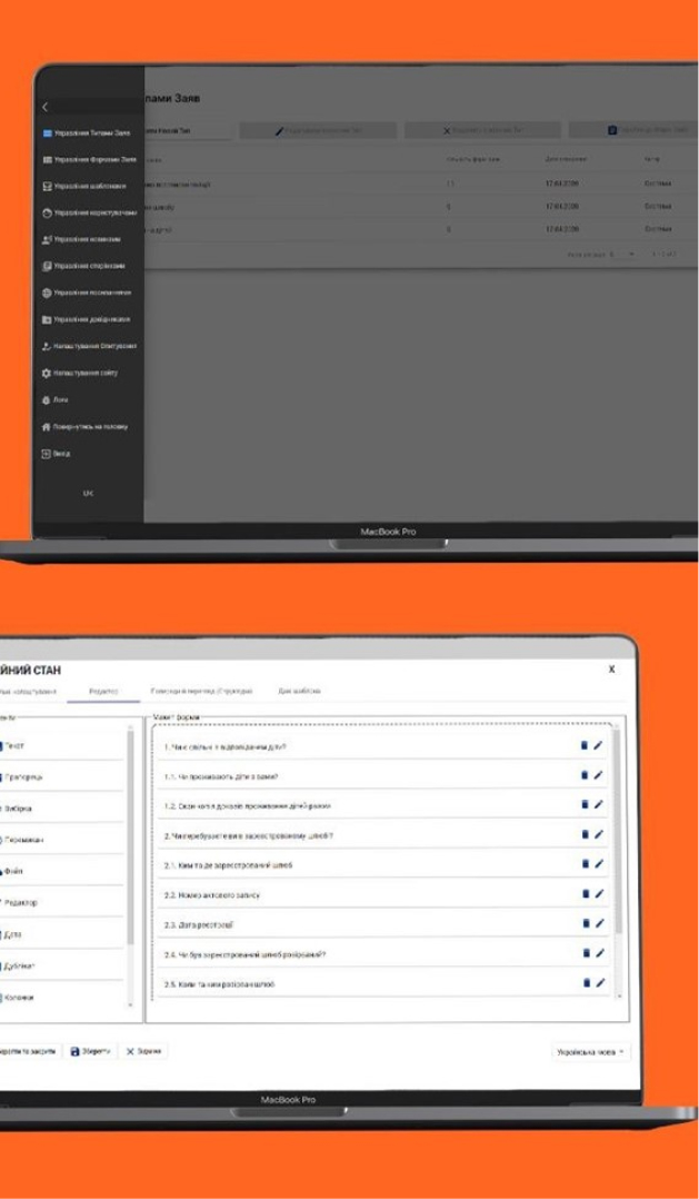 - Створення та редагування діалогових форм за допомогою конструктора форм в адмін-панелі.